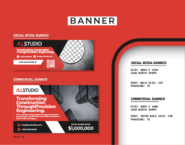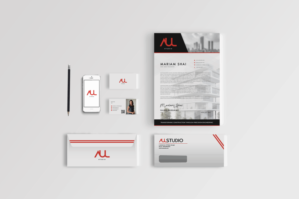 This stage focused on creating a cohesive and adaptable identity that reflects Aul Studio’s creative confidence and professional precision. Every element — from stationery and digital assets to print and on-site applications — was designed to ensure brand consistency across all platforms and client touchpoints.