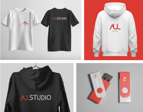 This stage aimed to ensure that the logo system maintained its strength across every touchpoint — from digital interfaces to printed materials — while preserving Aul Studio’s minimal yet distinctive visual language.